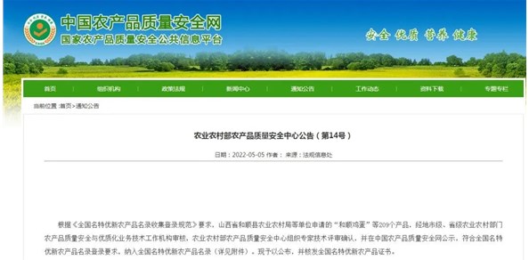 近日,農(nóng)業(yè)農(nóng)村部農(nóng)產(chǎn)品質(zhì)量安全中心發(fā)布了《農(nóng)業(yè)農(nóng)村部農(nóng)產(chǎn)品質(zhì)量安全中心公告》(第14號),公布了2022年第一批全國名特優(yōu)新農(nóng)產(chǎn)品。“棲霞蘋果”通過審核,被納入全國名特優(yōu)新農(nóng)產(chǎn)品名錄,本次上榜的棲霞蘋果產(chǎn)...