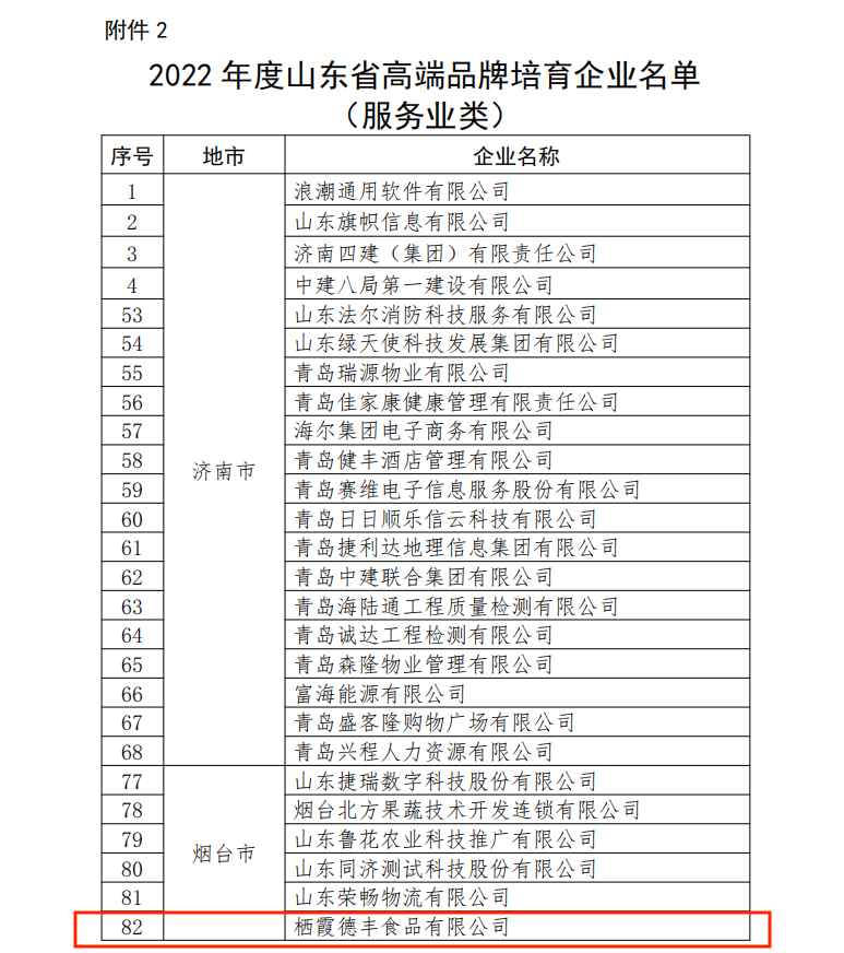 附件:2022年度山東省高端品牌培育企業(yè)名單(服務業(yè)類)